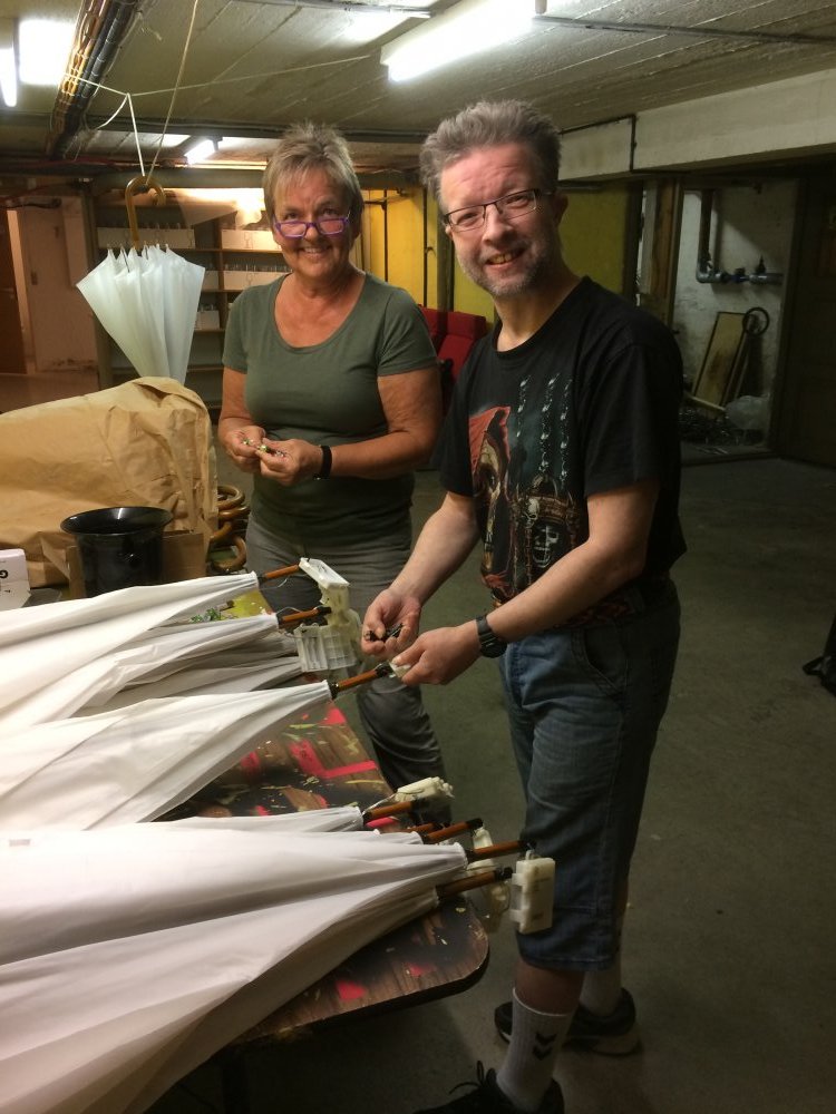 Så er Annette og Robert klar til at scanne billetter på Magasinet til forestillingen [...]Klods Hans