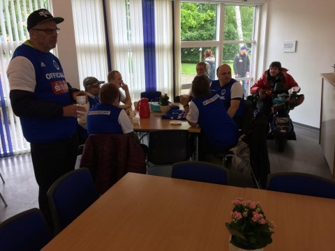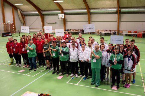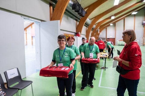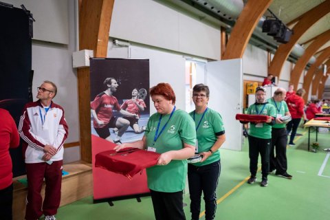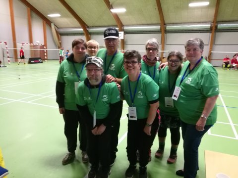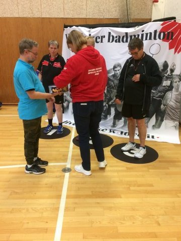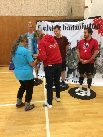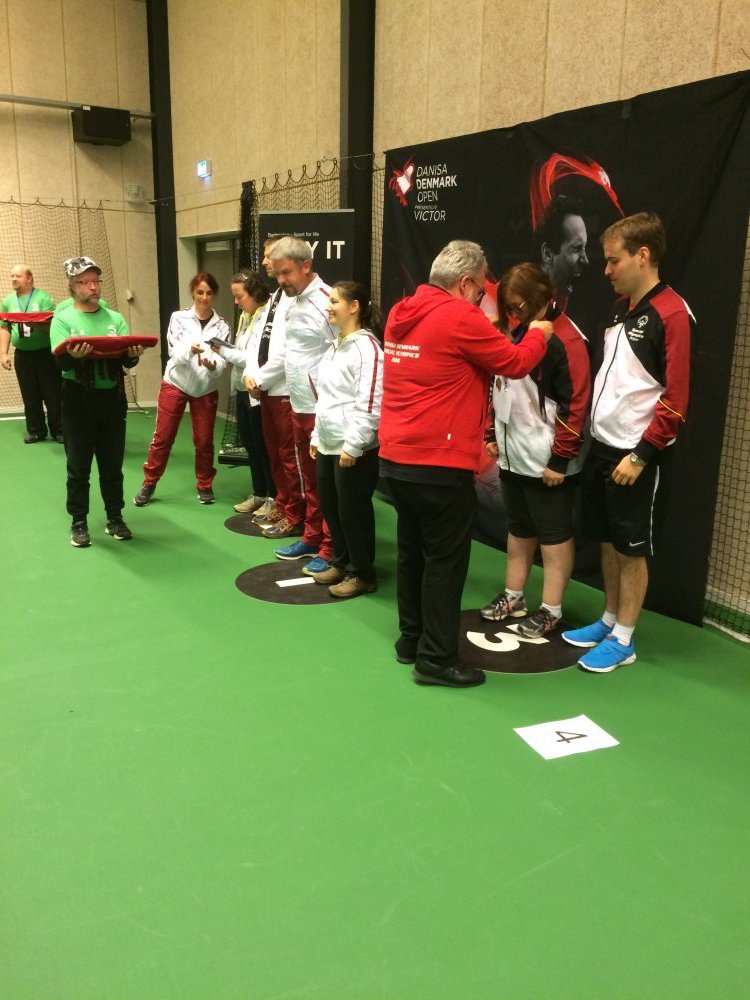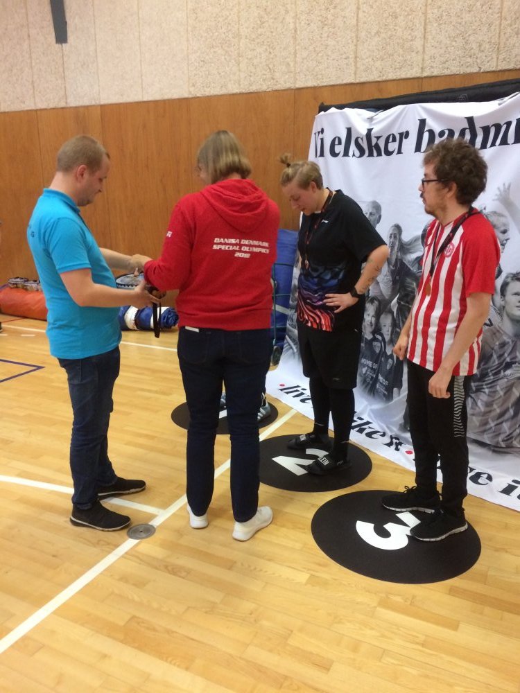 Præmieoverrækkelse ved Denmark Open Special Olympics 2018. Annika, Conny, Robert og Brian stå [...]r klar.
