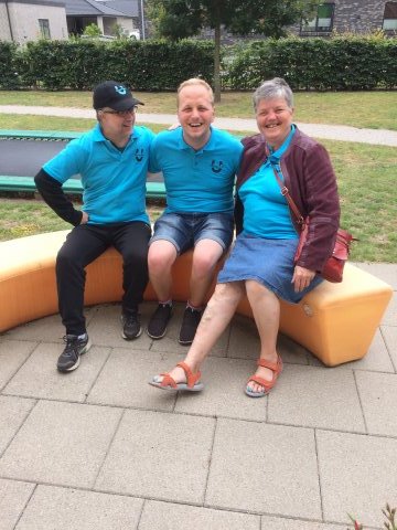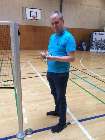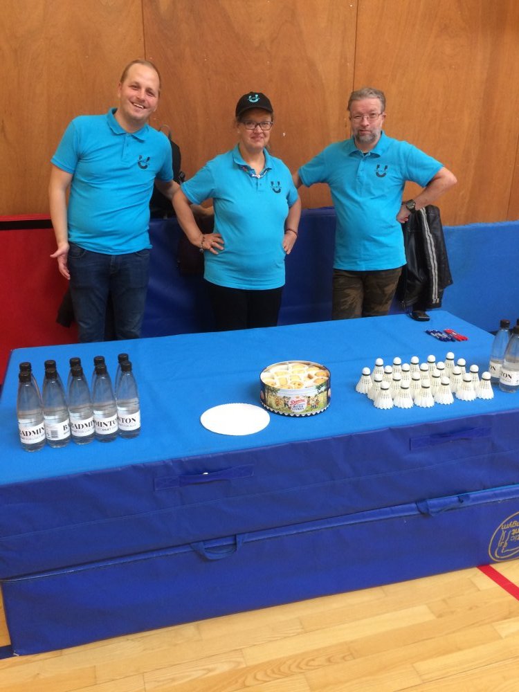 Præmieoverrækkelse ved Special Olympics badmintonstævne 2018. Robert, Annika og Brian holder bakken [...]med medaljer.