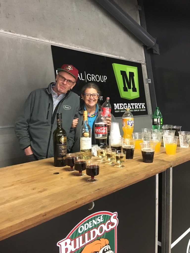 Så er Brian og Joan i Skøjtehallen og serverer vin og sodavand til [...]kampen OIK mod Herning. Vi håber på sejr til Odense.