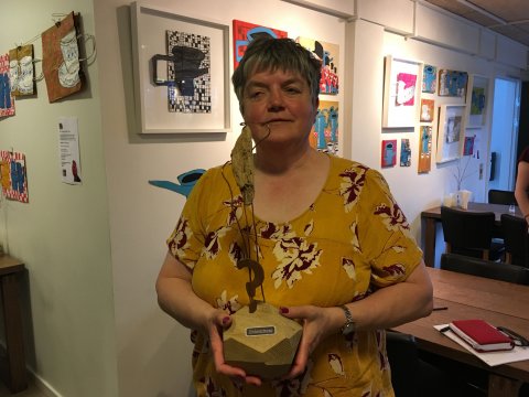 Poul Erik overrækker Sonja den vandrende Kickstarterpris som anerkendelse for en særlig [...]fin indsats.