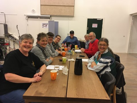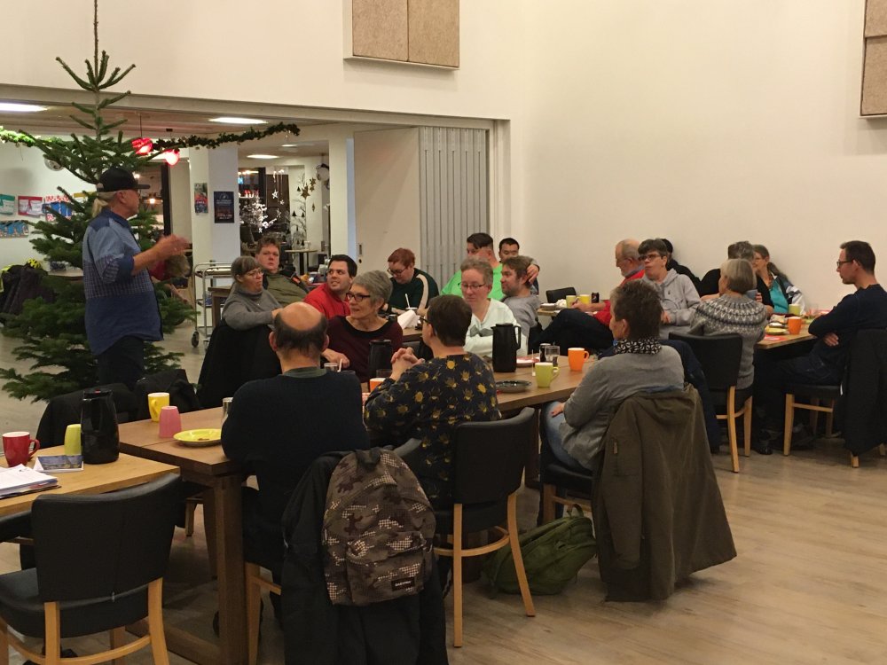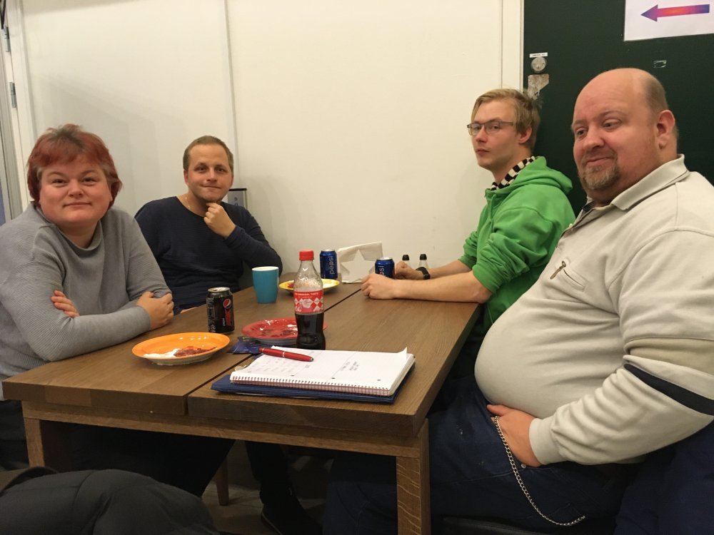 Annika, Frederik, Benjamin og Brian klar til at høre formandens tale. Medlemsmødet [...]i november 2019