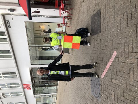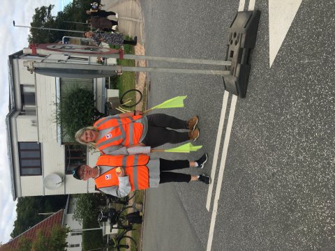 Lone og Tanja på et stille tidspunkt, fri for løbere og sure bilister. [...]Odenseløbet 2022